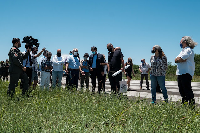 ☝ Una de las pistas del aeródromo.desde la que, coinciden varios de los ex conscriptos testigos que pasaron por el juicio, despegaban los «Vuelos fantasmas», como solían decirles. La larga caminata por toda la pista se realizó mientras los jueces Venditti, Eduardo Farah y Matías Mancini (en realidad es cuarto juez en este proceso pero remplazó a Esteban Rodríguez Eggers) iban consultando al oficial Bennardi y al testigo Escobar Rodríguez.