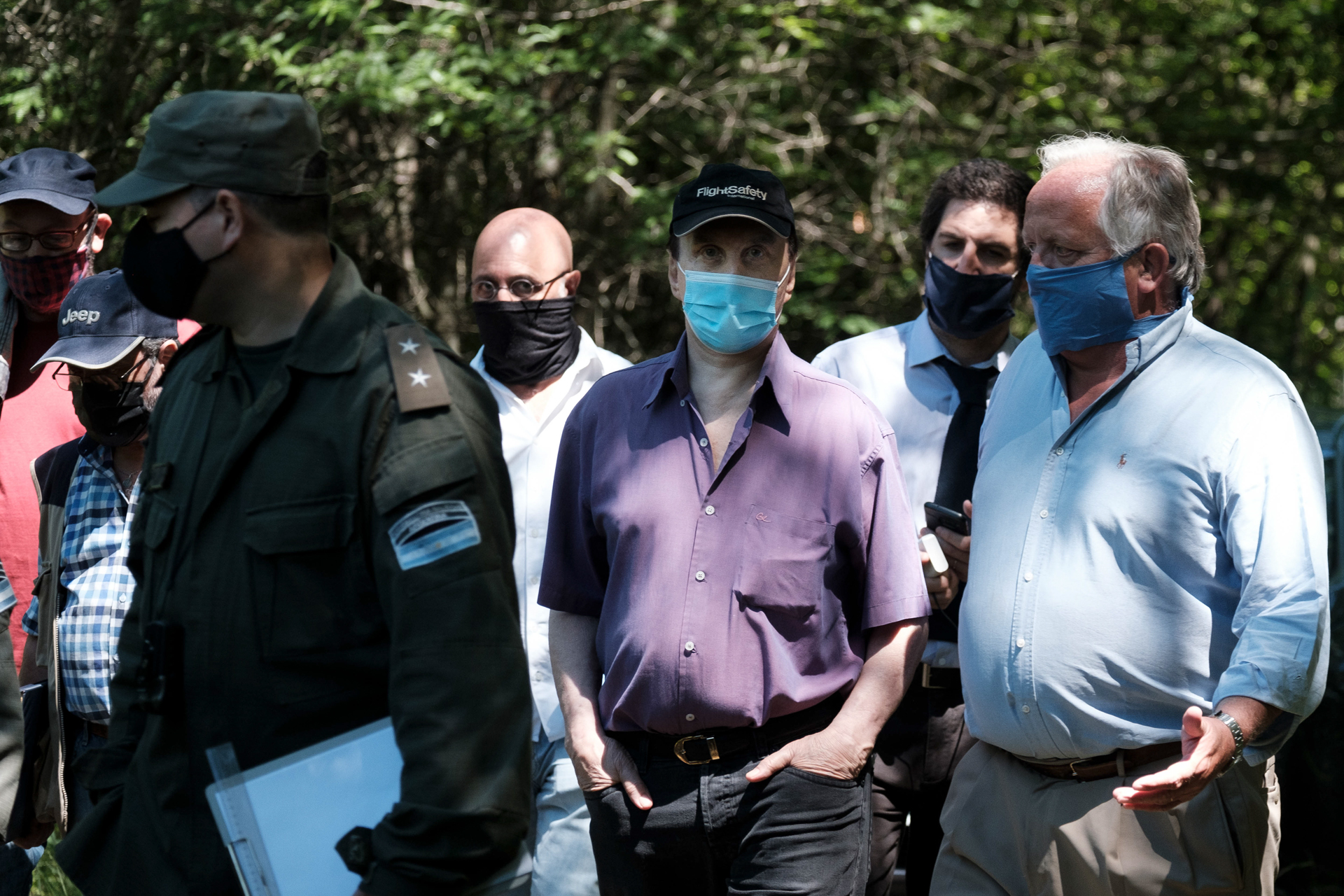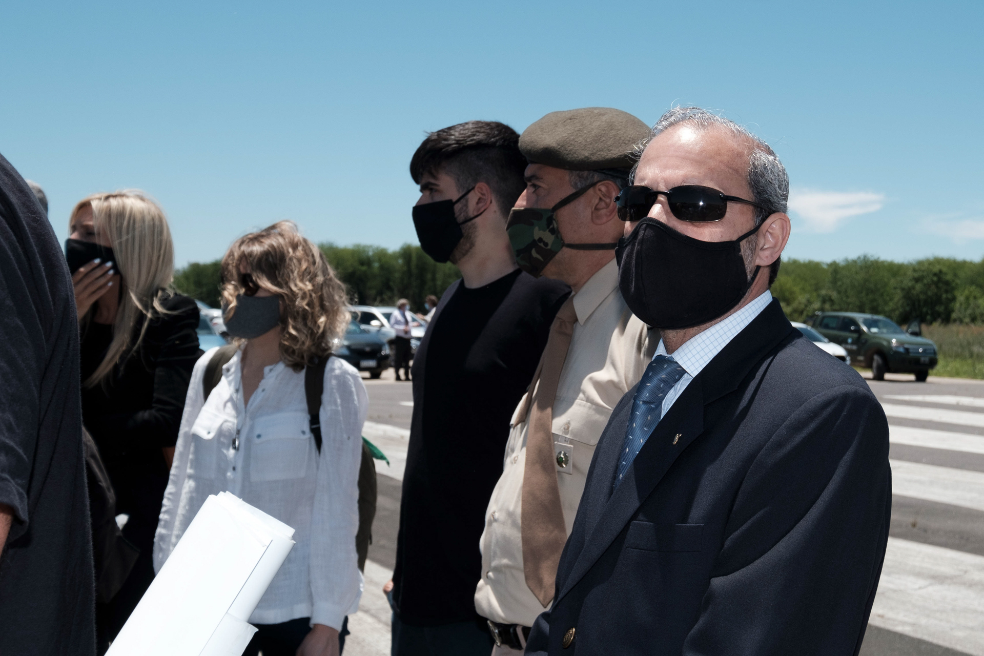 ☝ Además de Malacalza asistió a la visita ocular el hijo del imputado Luis del Valle Arce, de saco azul. Algunos pensaron que se trataba del imputado Eduardo Lance, lo que generó confusión: finalmente era el hijo de uno de los jefes del Batallón en aquellos años.