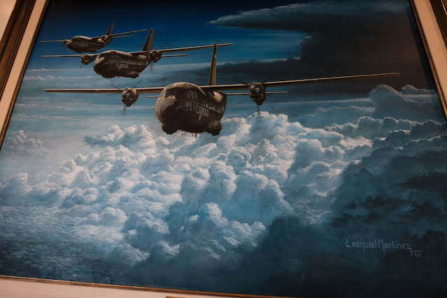 ☝ En ese mismo lugar, una obra del artista Exequiel Martínez, quién parece haber conseguido inspiración en las aeronaves indefectiblemente ligadas a los crímenes del genocidio.