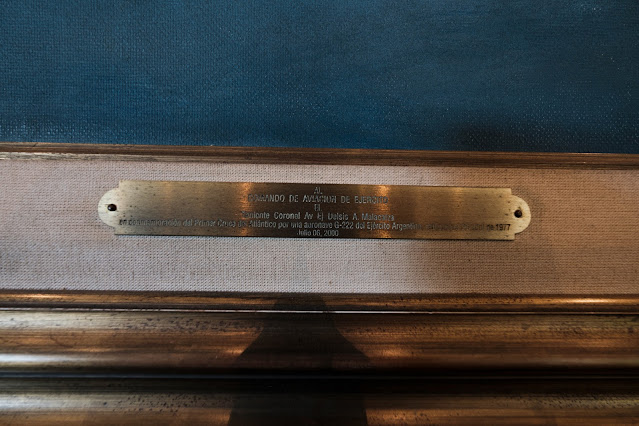 ☝ En una de las construcciones del aeródromo puede verse esta chapa conmemorativa del «Primer cruce del Atlántico por una aeronave G-222 del Ejército Argentino en 1977». La aportó el Teniente Coronel Delsis Malacalza. La fecha prueba que los aviones ya estaban en el país.