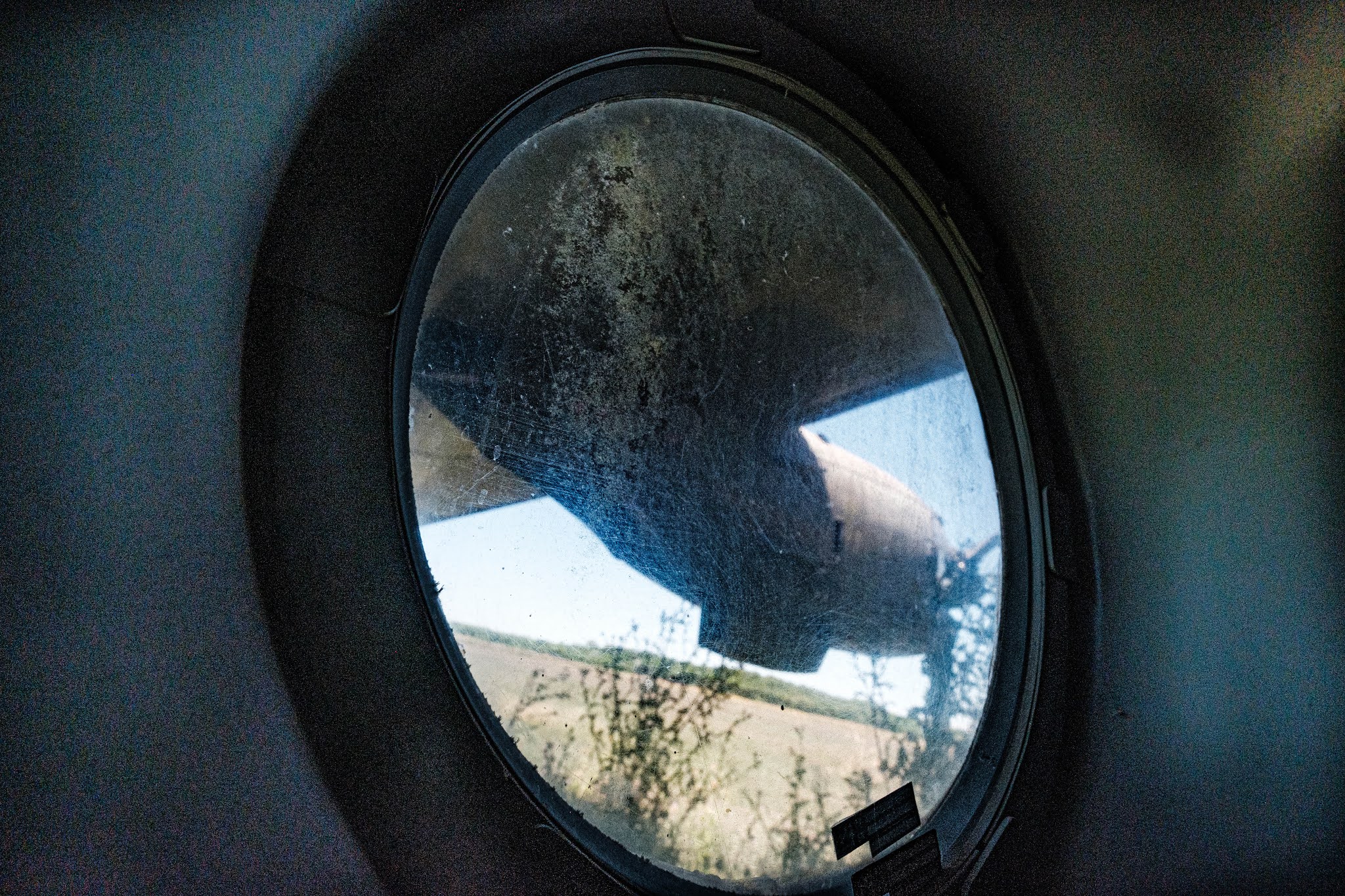 ☝ Desde el interior del avión, una ventana circular remite necesariamente a las preguntas que las familias tienen sobre sus desaparecidos/as, ¿miraría por la ventana? ¿Estaría totalmente adormecido por el Ketalar? Preguntas crueles que permanecen sin respuestas.