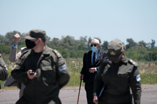 ☝ La caminata por la pista y la llegada para ver el Twin Otter. En el trayecto, Marcelo Castillo, del EAAF, nos dejó sus impresiones acerca de lo que para él fue una más entre tantas visitas a un lugar que todavía parece querer querer ocultar su pasado: Campo de Mayo.