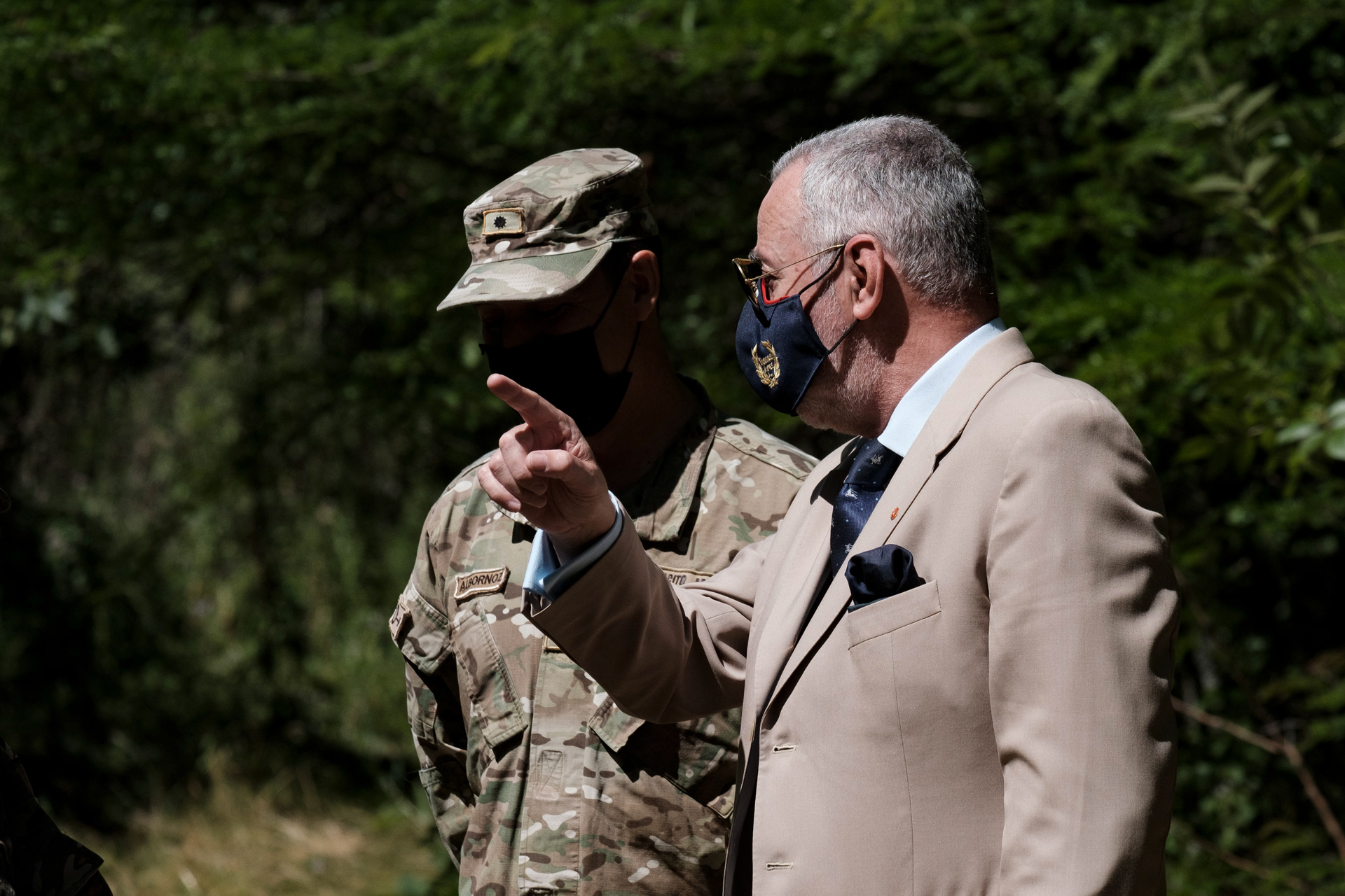 ☝ El abogado se manejó durante toda la visita como en su casa. Aquí dialoga con el oficial Albornoz, uno de los militares que actuó como enlace con el tribunal.