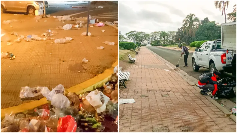El emblemático lugar de Paraná fue elegido por miles para palpitar la FDD. Como consecuencia, quedó lleno de basura. Ya fue limpiado. El antes y el después.