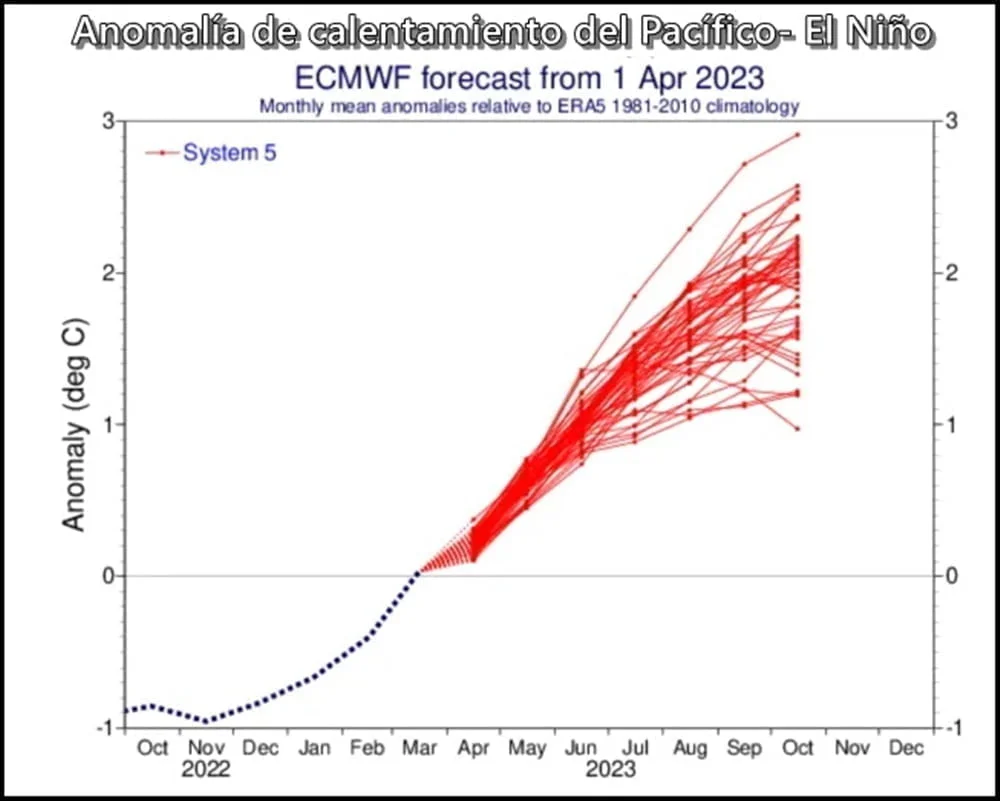 A raíz del comportamiento del clima en el mes de marzo, sumados a la presencia de un «Niño costero o Niño Modoki» frente a las costas de Perú y Ecuador, los modelos climáticos ya comienzan a señalar esta tendencia a que El Niño se anticipe y comience en el primer semestre o en el paso del primero al segundo.