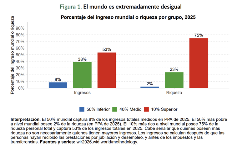 - Si se aleja el lente, el 10% de la población planetaria concentra el 75% del patrimonio global.