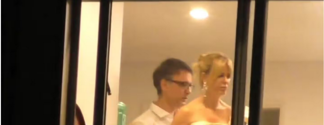 Según las fotos que publicó Farándula Show, la ex Gran Hermano se puso un vestido strapless, cabello rubio recogido y aros larguísimos y brillosos, mientras que el exfuncionario optó por una camisa blanca y el pelo hacia atrás con gel.